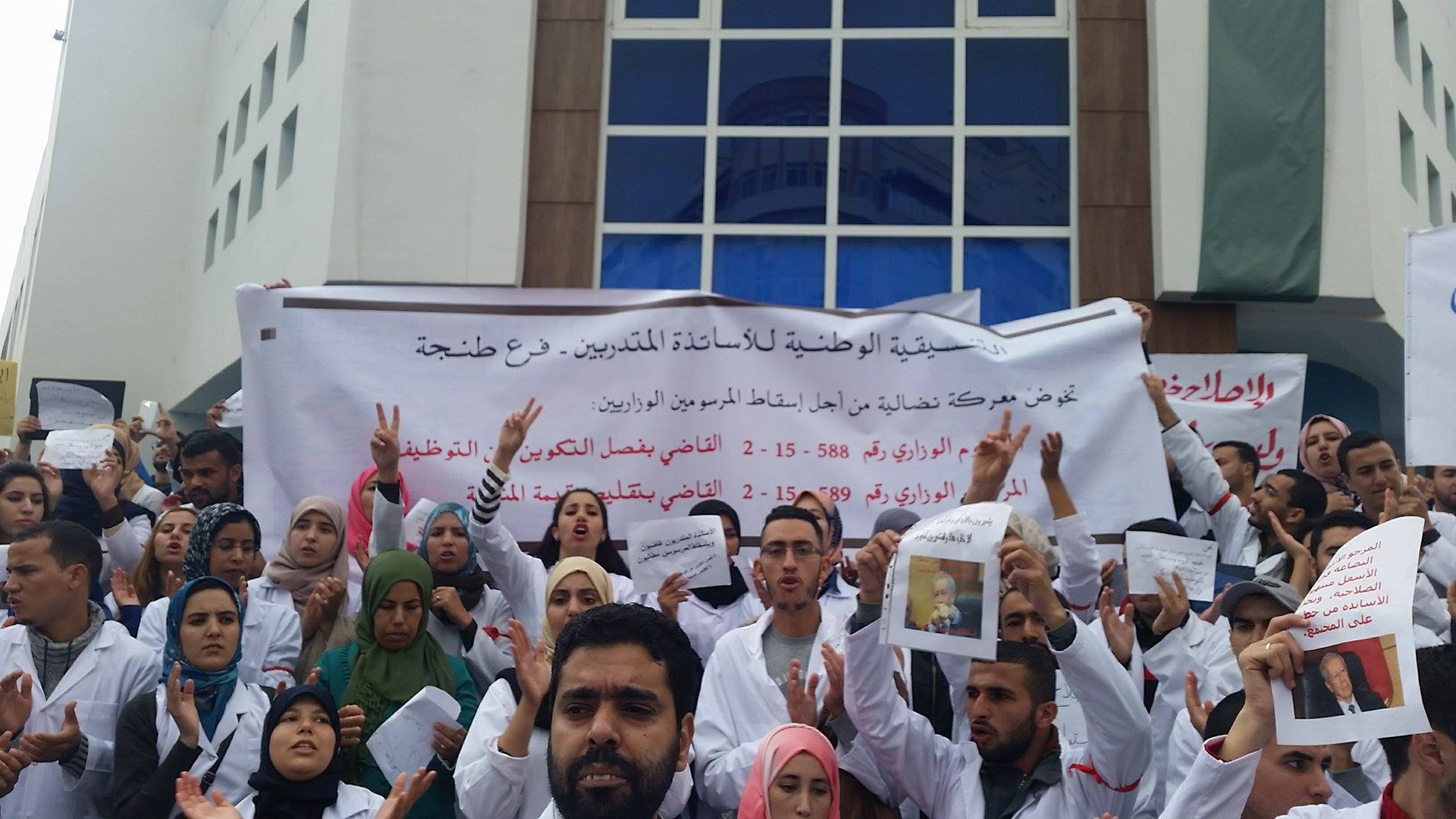 نظم اﻷساتذة المتدربون بالمركز الجهوي لمهن التربية والتكوين بطنجة مسيرة احتجاجية إلى مقر نيابة التعليم بطنجة، أعقبتها وقفتان تنديديتان أمام كل نن مقر الولاية ومقر نيابة التعليم، حيث رفع المحتجون شعارات رافضة للمرسومين الخاصين بفصل الوظيفة عن التكوين وتقليص منحة اﻷساتذة، كما نددوا بالسياسات التي تنتهجها الوزارة في تدبير ملف التعليم.