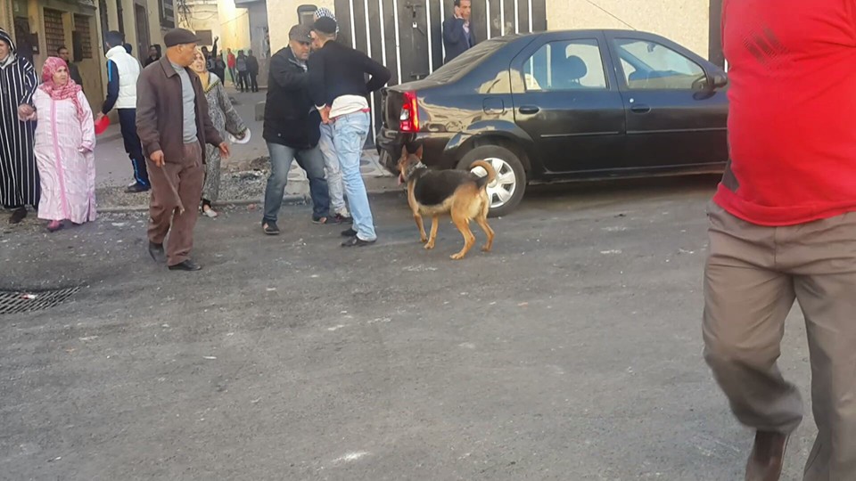 جرحى من الشرطة في هجوم عصابة بكلب شرس بالقصر الكبير + صور