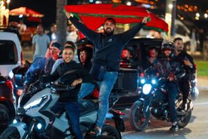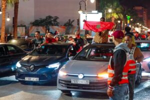 ليلة بيضاء يقضيها سكان طنجة، بعد أن أنارت سماءها أنوار الشهب النارية التي أطلقها العديد من المحتفلين، بينما لم تنقطع أصوات أبواق السيارات والأهازيج التي دأب المغاربة على ترديدها تعبيرا عن الفرح والبهجة مع كل إنجاز رياضي، يرفع العلم الوطني خفاقا بين الأمم.