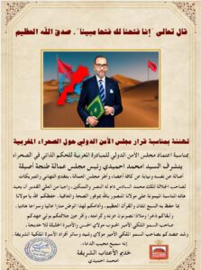 تهنئة السيد امحمد احميدي رئيس مجلس عمالة طنجة أصيلة بمناسبة قرار مجلس الأمن الدولي حول مبادرة الحكم الذاتي في الصحراء المغربية