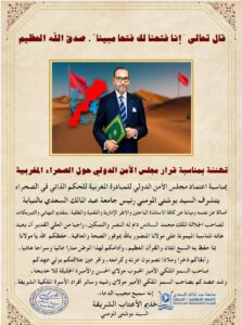 تهنئة السيد بوشتى المومني رئيس جامعة عبد المالك السعدي بالنيابة بمناسبة قرار مجلس الأمن الدولي حول مبادرة الحكم الذاتي في الصحراء المغربية