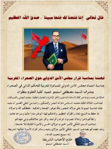 تهنئة السيد مصطفى استيتو عميد كلية العلوم بتطوان بمناسبة قرار مجلس الأمن الدولي حول مبادرة الحكم الذاتي في الصحراء المغربية