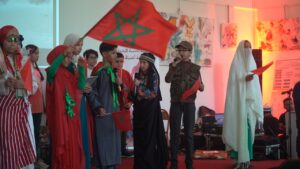 مشاركة تلاميذ المؤسسات التعليمية في تقديم عروض مسرحية وأزياء مغربية تقليدية تعبيرًا عن حب الوطن والانتماء.