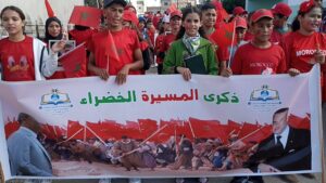 في إطار الاحتفالات الوطنية المخلدة للذكرى الخمسين للمسيرة الخضراء المظفرة، نظمت جمعية آباء وأمهات وأولياء تلاميذ وتلميذات مدرسة عبد الحميد احساين، يوم الخميس 6 نونبر 2025، مسيرة رمزية واحتفالاً تربوياً مميزاً لفائدة تلاميذ المستويين الخامس والسادس ابتدائي، بشراكة مع جمعية شباب إكزناية للتنمية والإصلاح وجمعية حي البرانص للتنمية الاجتماعية والثقافية والرياضية والبيئية.