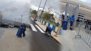 وسخرت الشركة، وفق مصادر ميدانية، موارد بشرية ولوجيستيكية غير مسبوقة لضمان نظافة الملعب ومحيطه قبل وأثناء وبعد المباراة، إذ جرى تشغيل: