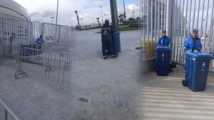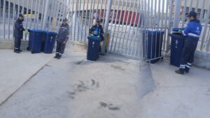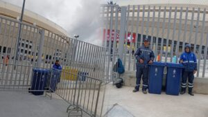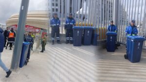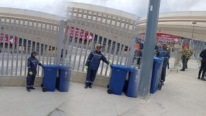 وضع حوالي 120 حاوية نفايات من مختلف الأحجام داخل محيط الملعب
