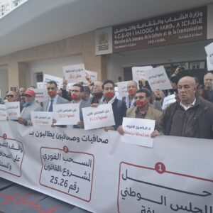 وفي سياق متصل، دعا المحتجون إلى إطلاق مسار وطني ديمقراطي لإصلاح قطاع الصحافة، يقوم على التشاور المباشر مع الصحافيين والصحافيات، بعيداً عن التعيينات الإدارية أو الحسابات السياسية، مع ضرورة وقف تدخل الجهاز التنفيذي في تنظيم المهنة ووضع حدّ لسياسة التعيين داخل هياكل يُفترض أن تكون مستقلة.