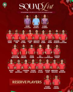 كما أعلن الطاقم التقني عن لائحة احتياطية تضم كلًّا من يوسف بلعمري وحمزة إغامن، تحسبًا لأي طارئ قبل انطلاق البطولة.