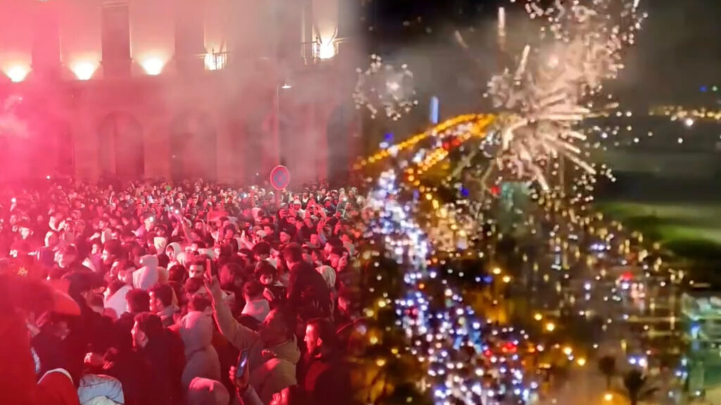 مباشرة بعد الإعلان عن نهاية المباراة، وطيلة ليلة الأربعاء وأولى ساعات صباح الخميس، خرج الآلاف من المشجعين بشوارع وساحات مدينة طنجة، في طقس احتفالي اعتاده الناس على مدى الشهور الماضية، بعد تكرار الإنجازات التي بصمت عليها المنتخبات والأندية المغربية على الصعيدين القاري والدولي في كرة القدم.