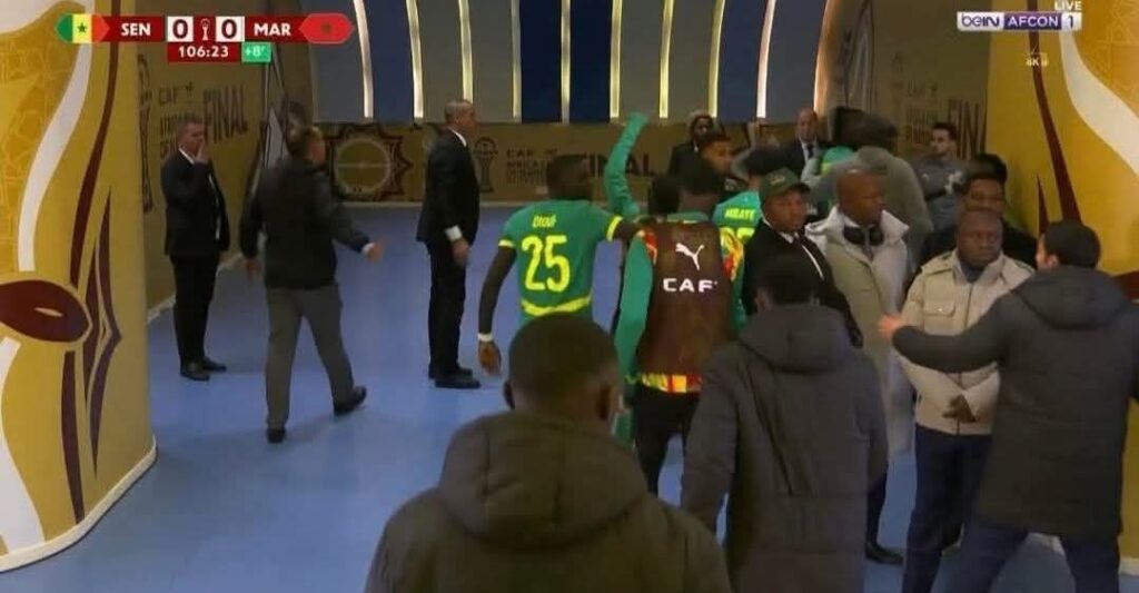 وأعلنت الجامعة الملكية المغربية لكرة القدم أنها ستلجأ إلى المساطر القانونية المعمول بها لدى الكونفدرالية الإفريقية لكرة القدم والاتحاد الدولي لكرة القدم، من أجل البتّ في واقعة انسحاب المنتخب السنغالي من أرضية الملعب خلال المباراة النهائية أمام المنتخب المغربي، وما رافق ذلك من أحداث، وذلك عقب إعلان الحكم عن ضربة جزاء صحيحة، حظيت بإجماع المختصين.