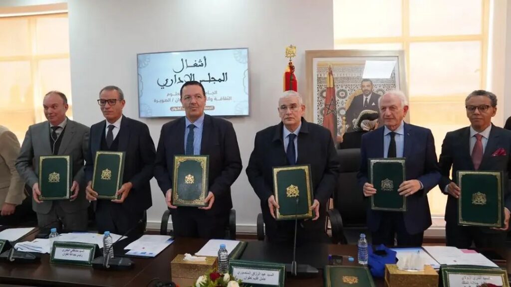 احتضنت رئاسة جامعة عبد المالك السعدي بمدينة تطوان، يوم الجمعة 30 يناير 2026، اجتماعًا للمجلس الإداري للجامعة الدولية لعلوم الثقافة والتراث (تطوان–الصويرة)، وذلك برئاسة أندريه أزولاي، مستشار الملك محمد السادس، وبحضور عامل إقليم تطوان، إلى جانب عدد من المسؤولين الترابيين، والمنتخبين، والفاعلين المؤسساتيين، والأكاديميين، وممثلي الهيئات الثقافية بكل من تطوان والصويرة.