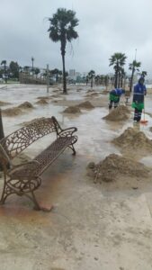 باشرت فرق النظافة التابعة لشركة أرما، صباح اليوم، عمليات واسعة لتنقية كورنيش مالاباطا، عقب العاصفة البحرية التي شهدتها المدينة خلال الساعات الماضية، وخلفت تراكم كميات من الأتربة والرمال والنفايات على مستوى الممرات والساحات المحاذية للشاطئ.