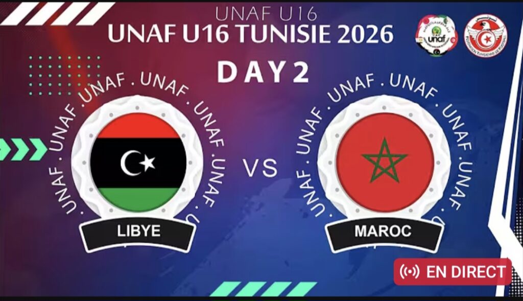 actualités football marocainChampionnat UNAF U16compétition nord-africaine U16diffusion en direct Maroc Libyedirect football Marocéquipe de Libye U16équipe du Maroc U16football des jeunesMaroc Libye U16Maroc vs Libyematch des jeunes aujourd’huimatch Maroc Libye U16programme UNAF U16résultats UNAF U16sélection marocaine des moins de 16 ansUNAF Tunisie 2026Union nord-africaine de football